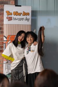 活动中最动人的一幕,莫过于主办人 Chrystina Ng 亲自剪下自己留了 7 至 8 年的长发。她邀请母亲亲手为她剪下这束头发——这一刻不仅代表着爱的传承,也记录下母女间最深的情感羁绊。
