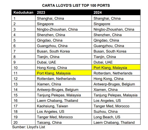 巴生港口首次被国际权威海事刊物《劳氏日报》(Lloyd’s List)评选为全球第10大繁忙货柜港口,成功超越香港创历史记录,巩固我国作为新兴海事强国的地位。