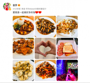 她在微博晒出多张美食照、一张比心照和男友视角的日常照,甜甜地写下:“爱就是一起做好多的饭”,还在最后加了两个爱心符号,认爱圈外男友。