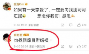 金瀚则开心回应:“如果有一天恋爱了,一定会向朋哥汇报的!”没想到苏有朋秒回道:“也找个节目办婚礼”,随后却把回应删除,网友们都认为他在暗讽张智霖!