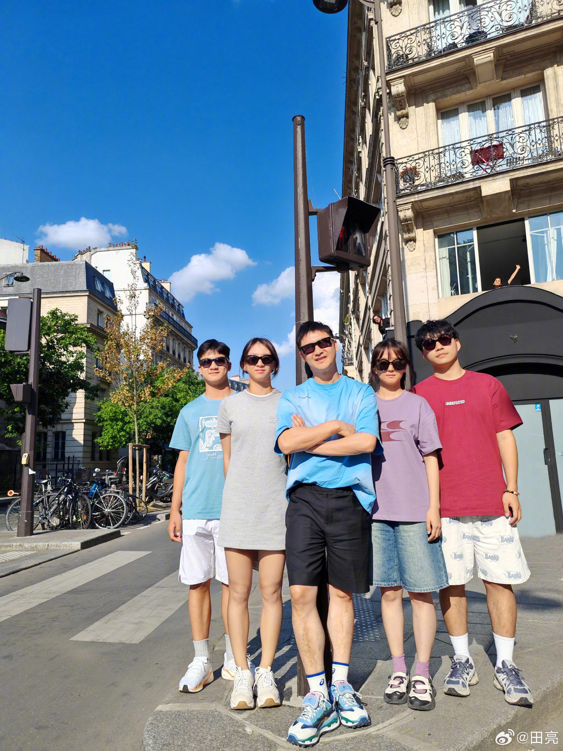田亮自2007年退役后投身娱乐圈,日前他与团队到巴黎直播卖衣服,身后一对年轻男女戴墨镜举着T恤展示,有网民称是他的一对儿女,结果引发不少争议。