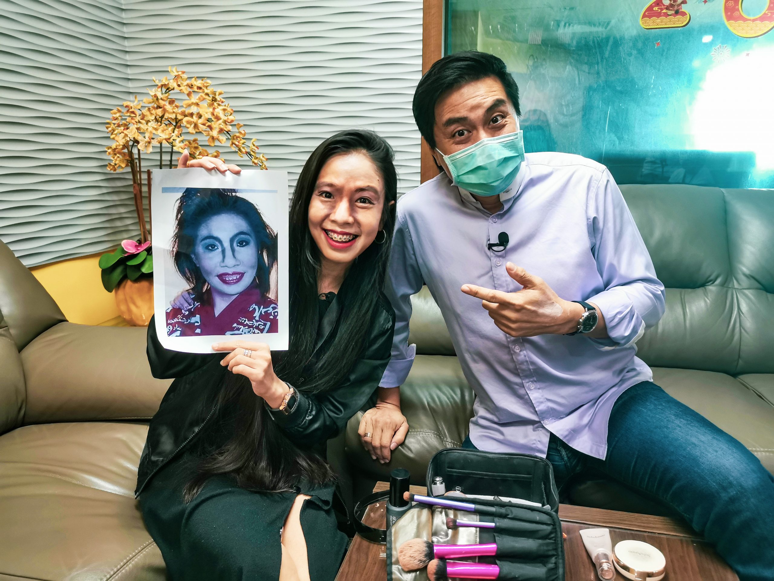 当被问及是不是第一次替别人化妆时,陈峰坦言自己小学时期“很会画画”,但最后一次“化妆”是替鸡肉涂咖哩粉。峰哥这番话已让Chrystina “一脸死灰”的直呼“死啦!”;为了这次挑战,Chrystina做足准备,自备化妆品,并为“菜鸟化妆师”陈峰讲解部分各类化妆品用途。