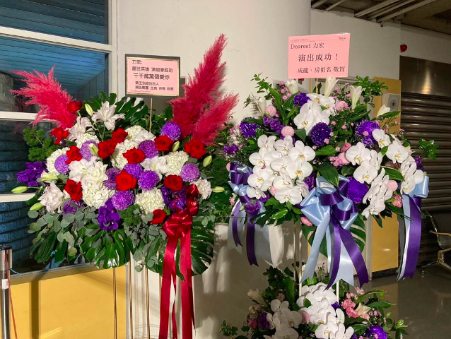 他收到的祝贺花篮更几乎全是天王天后,包括成龙及房祖名父子、张惠妹、陶喆、萧亚轩、林志玲、方文山、潘玮柏、王牌经纪人陈镇川等人,花篮摆满走道。