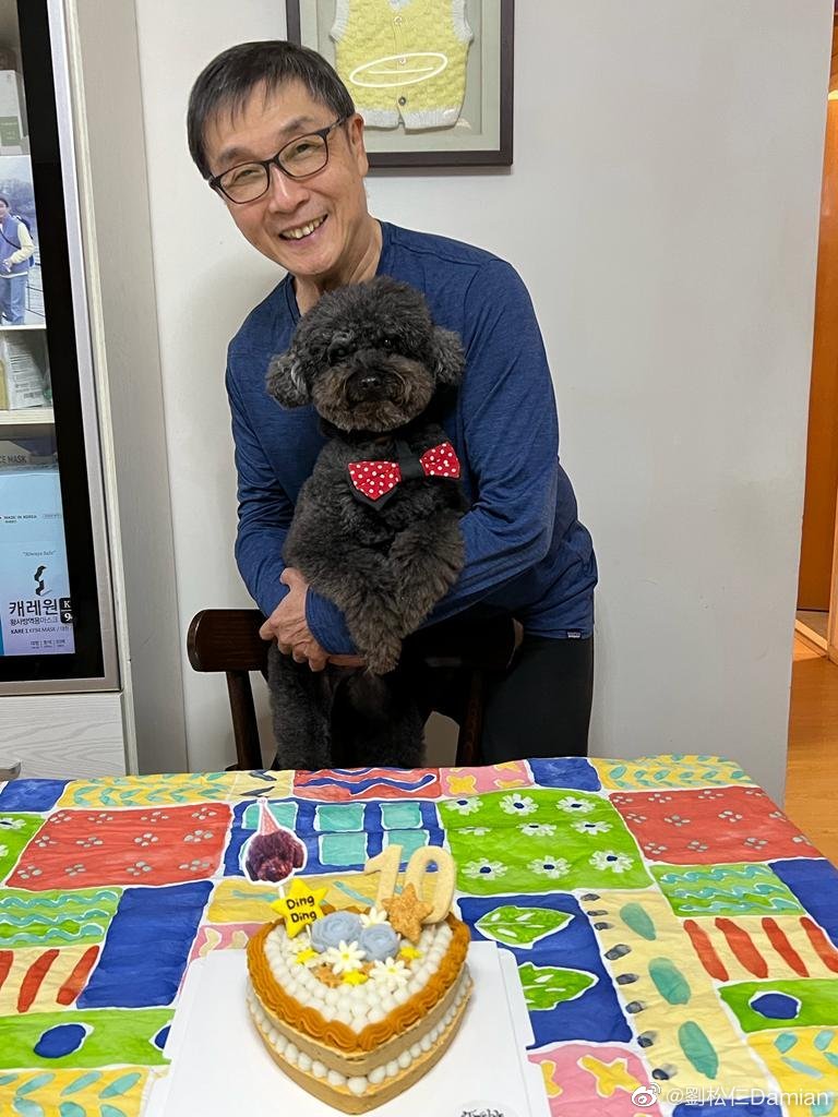 照片中,身穿深蓝色长袖T恤的刘松仁抱著爱犬合照,贴文写道:叮叮日,与你度过十个年头,感谢你的倍伴!无限欢乐!​”照片中他虽然精神看起来不错,但身材消瘦不少。