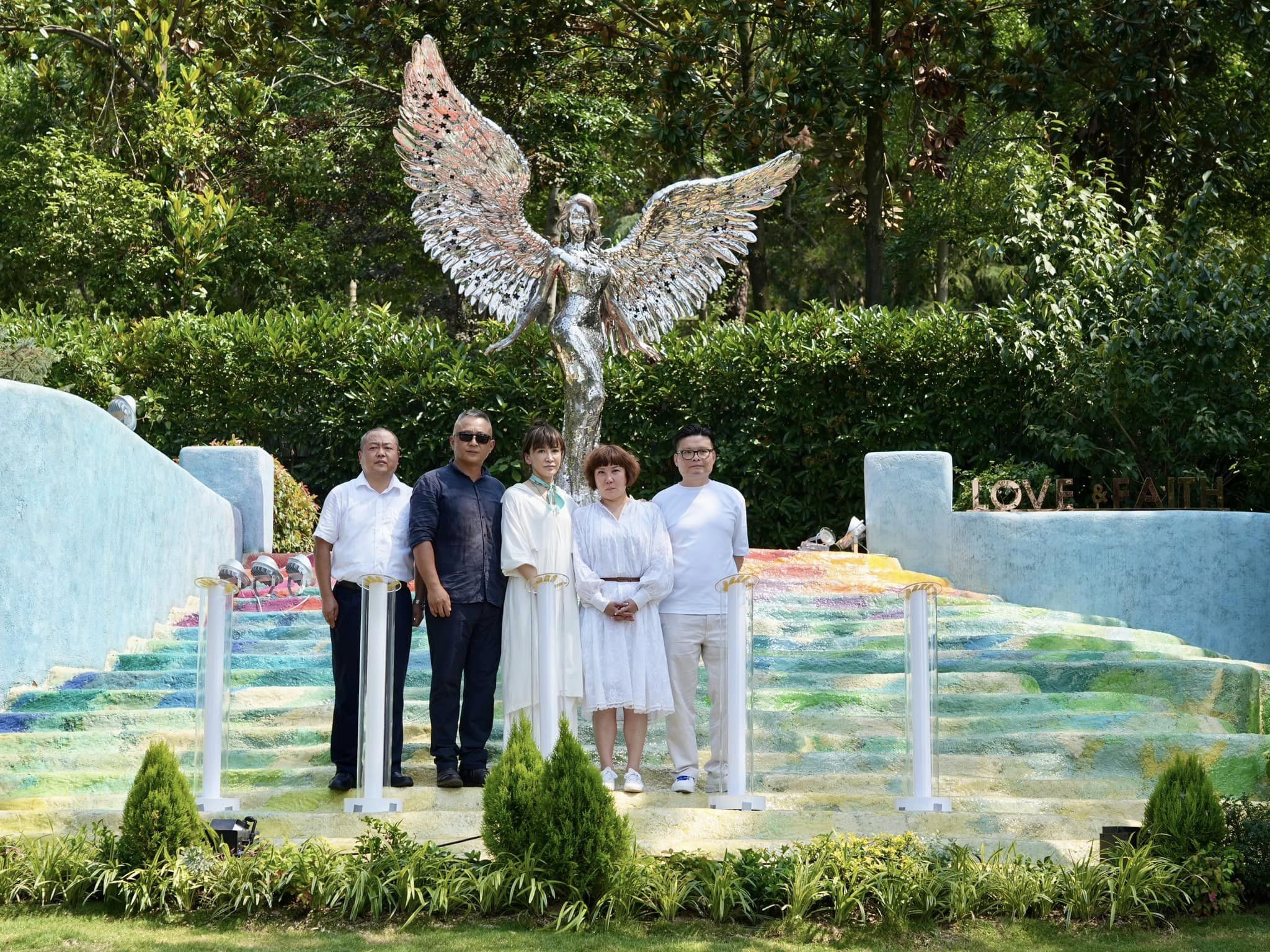李玟的艺术纪念雕像历时10个月来精雕细琢,主体以镜面不锈钢材质打造,在阳光下折射出耀眼光芒,展开一双天使翅膀,屹立于巨型珍珠贝壳之上,表达了李玟宛如天使般存在。