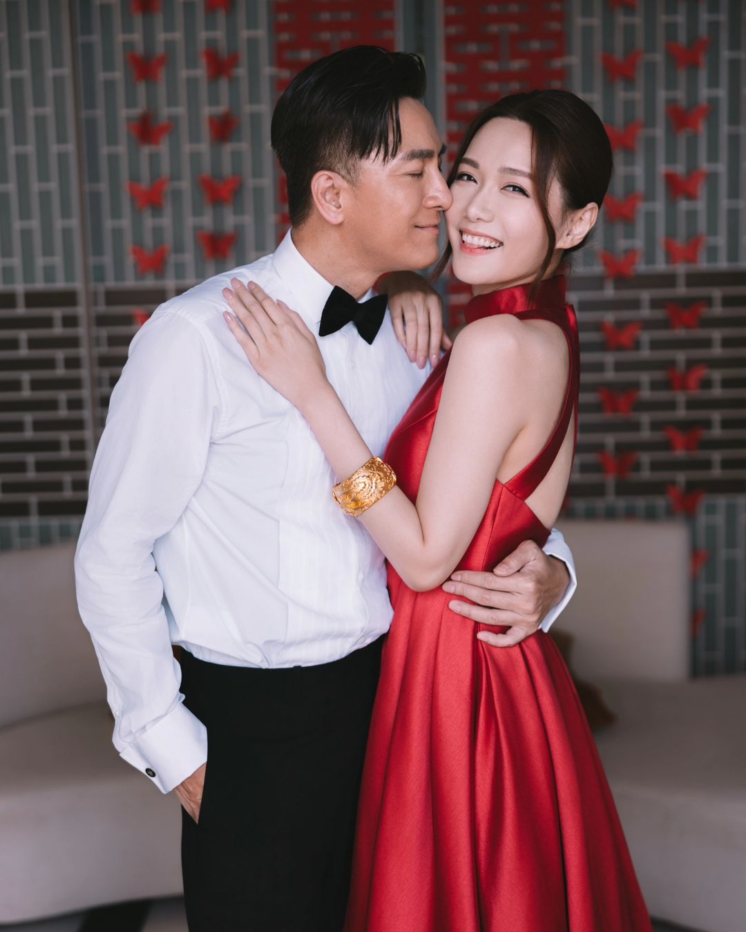 汤洛雯也发文感谢老公:“感谢老公给了我一个非常难忘的婚礼,当天每一个环节都充满感动和快乐,觉得我遇上你我真的很幸福,是你令我变成一个更好的人,但愿我们相爱到白头。”