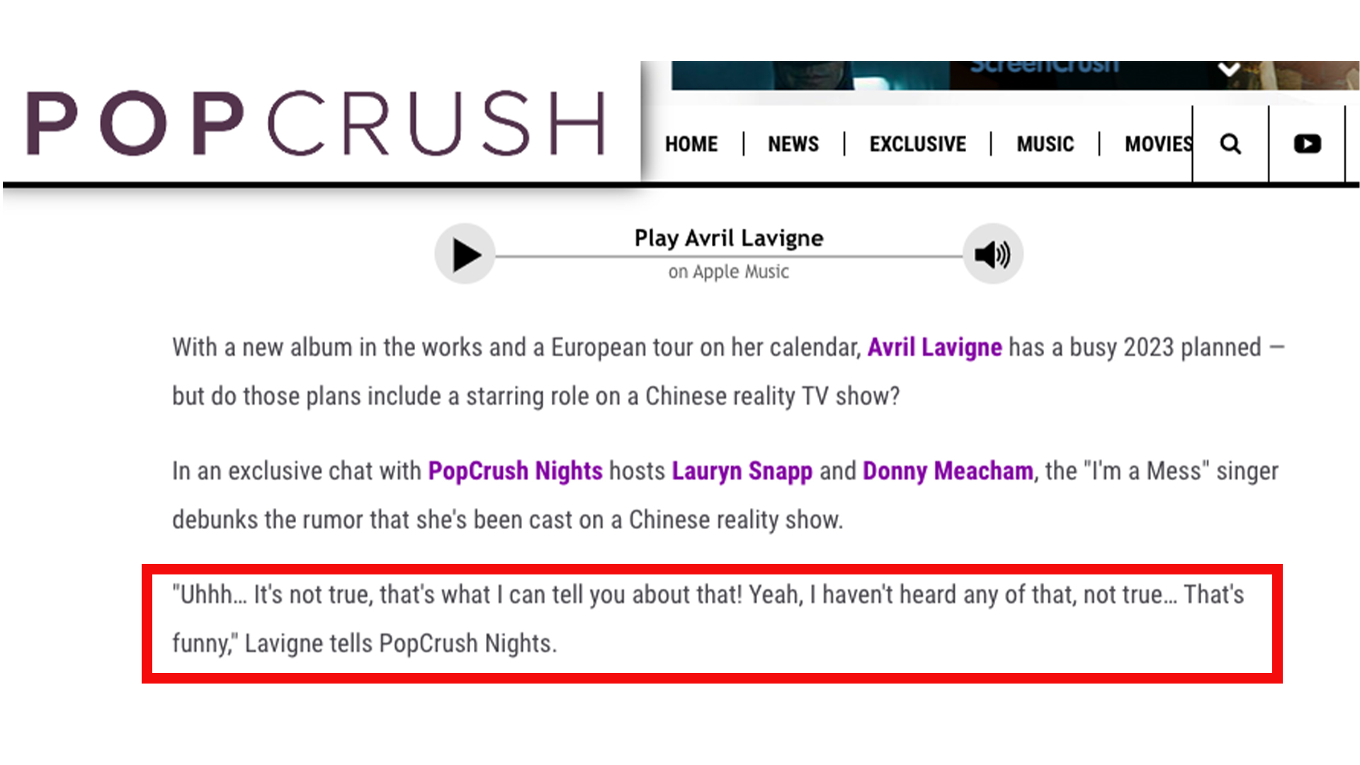 在中国社媒网上,艾薇儿的回应变成了:“我不确定我能不能告诉你”,因此中国网民认为,这个回应并没有直接否认,因此艾薇儿有希望参加《浪姐4》。