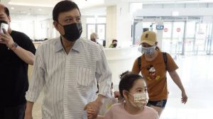 余天带着外孙女憔悴现身,被问到女儿现况时,他含泪坦言现在状况不是太好。