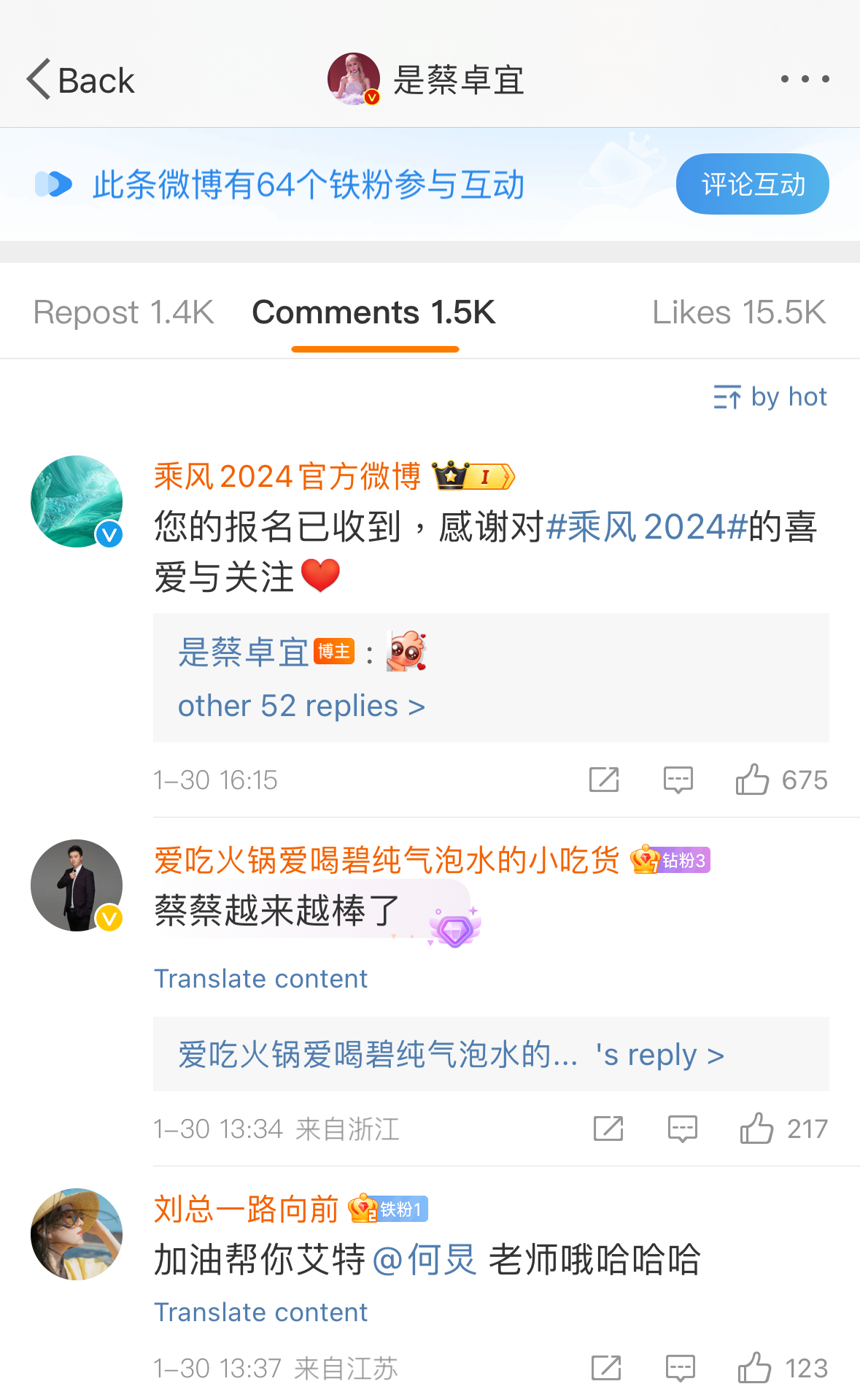 《乘风破浪2024》官方微博在短短3个小时内回应道:“你的报名已收到,感谢对乘风2024的喜爱与关注。”