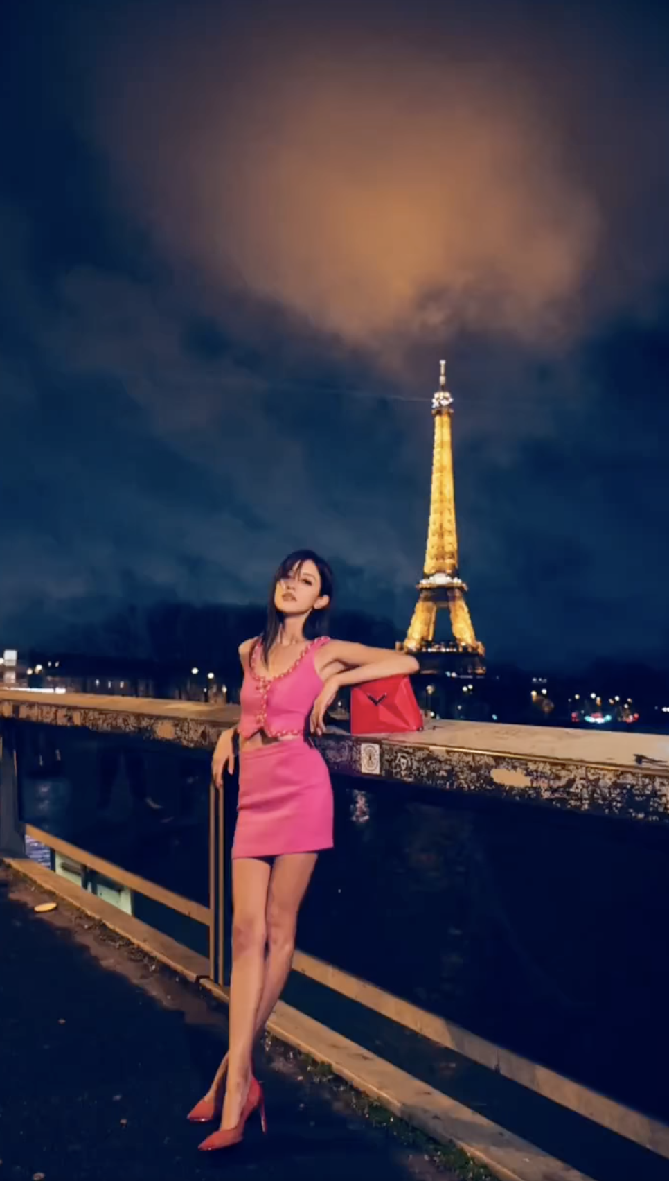 影片中,陈凯琳以亮眼的粉色小背心搭配迷你套装亮相,出现在巴黎的标志性地标巴黎铁塔前,摆出美丽的造型拍摄美照。