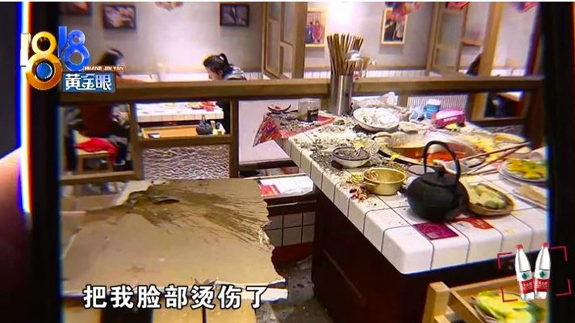 这起事故发生在3月11日,该分店天花板上的石膏块突然脱落,跌落火锅中,令火锅中的汤底溅起,烫伤男食客的脸部,当场起了水泡,虽然目前水泡已消,但脸上仍留有清晰的疤痕;至于女食客则被砸到头部及脸部,右手则骨折。