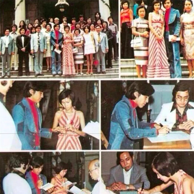 姜大卫和李琳琳在1974年,不理会世俗眼光奉女成婚,当年,他们没有穿上传统的婚纱礼服,反而选择时尚衣饰注册。