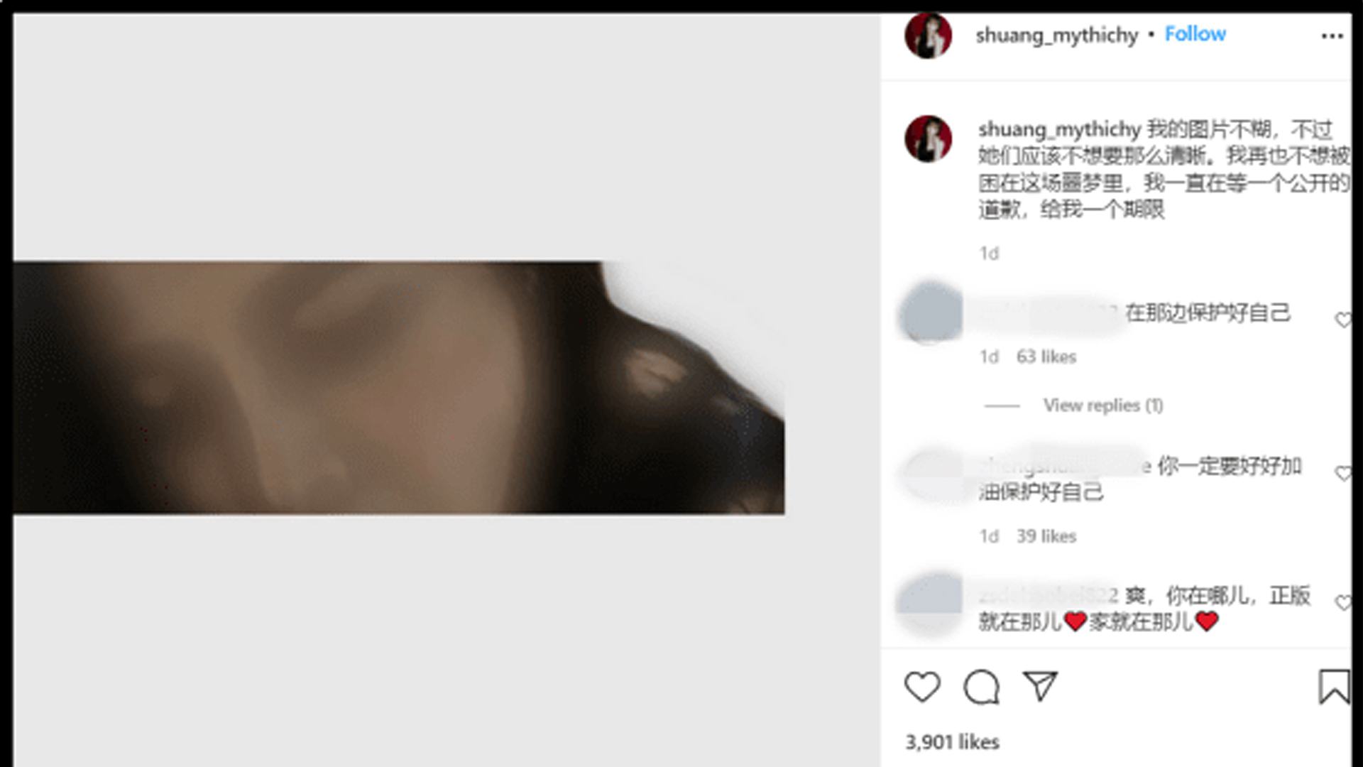 她于29日突然PO出一张疑似男女交欢的照片,写道:“我在等一个公开的道歉。”