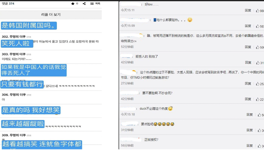 有网民指,节目名字以及标志与《鱿鱼游戏》一样,是“抄袭”,而不少韩国网民则嘲讽中国:“复制贴上的速度真的世界第一”、“是韩国附属国吗?有病”、“有够不要脸” 。