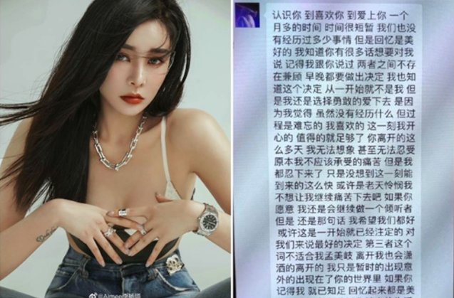 从李杨璐公开的对话截图中,只见孟美岐深情地向男方告白:“认识你到喜欢你到爱上你,一个多月的时间,时间很短暂,我们也没有经历过多少事情,但是回忆是美好的”、“记得我跟你说过,两者之间不存在兼顾,早晚都要做出决定,我也知道这个决定从一开始就不是我,但是我还是选择勇敢爱下去”、“第三者这个词不适合我孟美岐,离开我也会潇洒的离开的”,间接证实孟美岐知道对方有正宫女友的事实。