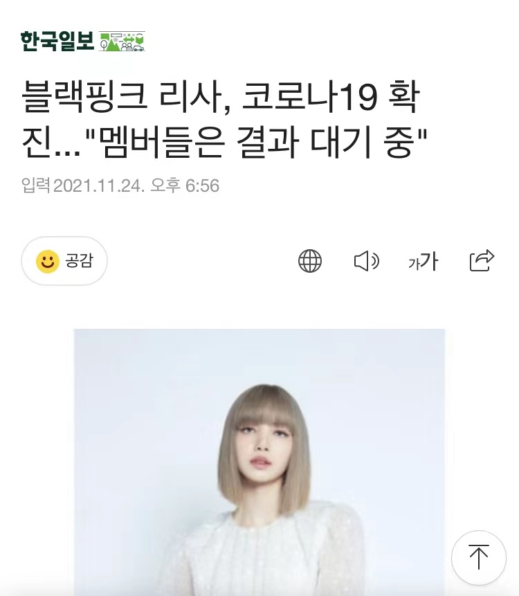 《韩国日报》快讯,韩国女团Blackpink成员Lisa确诊新冠肺炎!