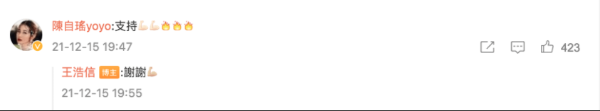 Yoyo随即留言“支持”,而王浩信就回覆“谢谢”;虽然留言看似普通,但依然掀起网民热议!