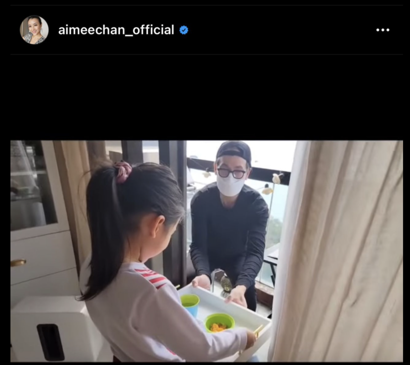 陈豪的太太陈茵媺亦在IG上载短片,片中见女儿Camilla送上小食给在露台生活的父亲,陈豪全程戴着口罩,接过小食后即关上玻璃门,独自在露台进食,而据知剧组将停工到3月7日后才考虑复工。