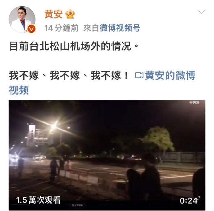 已长居中国的“台独克星”艺人黄安昨日信誓旦旦称美国众议院议长佩洛西不会访台,更打赌称若她访台就要嫁给台湾总统蔡英文,结果佩洛西如期而至,黄安“认赌不服输”,上微博发文喊3次“我不嫁” 但也自嘲的转发一张“婚纱照”,赶紧结束这一回合“打赌”。