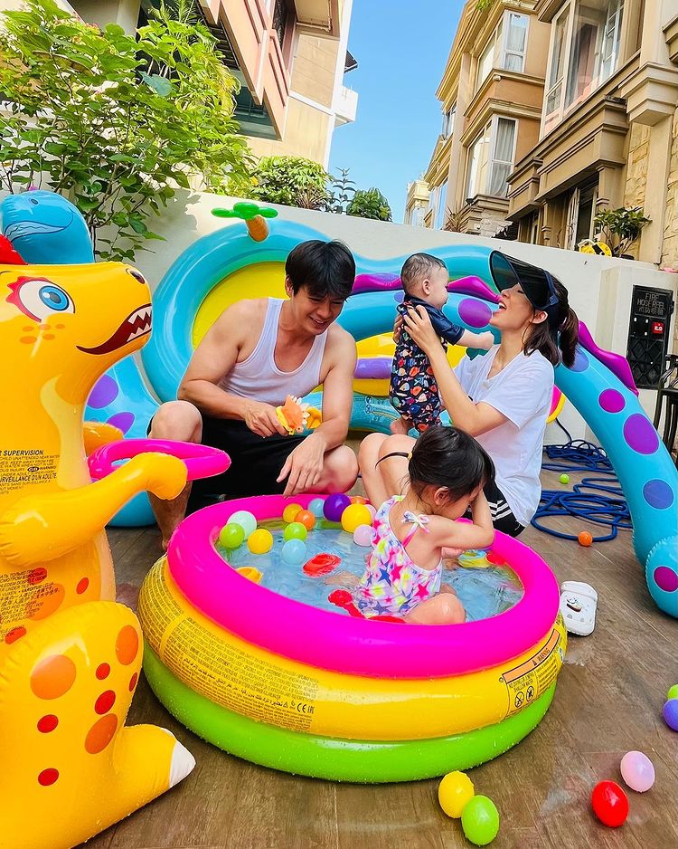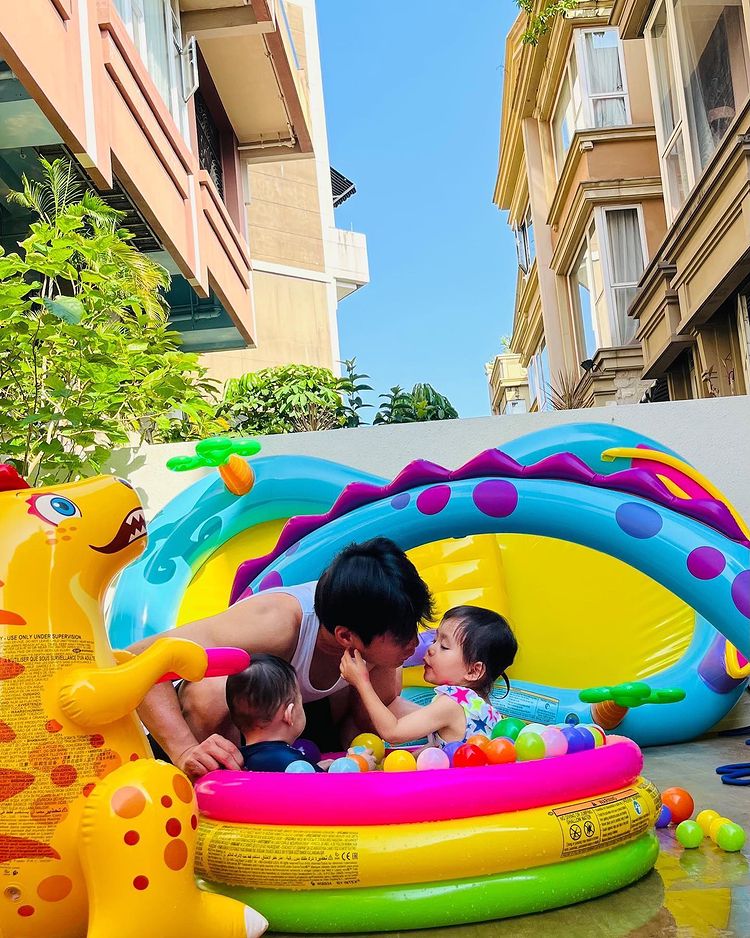 他在Instagram上载一家四口享受家庭乐的照片,照片中夫妻俩在家中的私人花园内为一对子女搭建了“私人泳池”,大型的吹气玩具,而杨茜尧租住在大埔豪华别墅式屋苑,附设的寛敞私人花园也意外曝光。