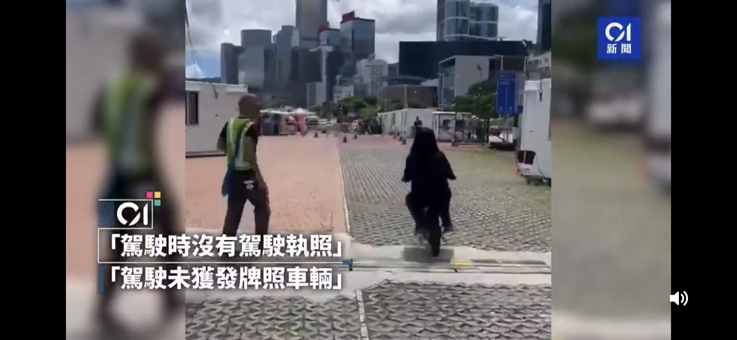 据警方指,港岛总区交通部执行及管制组特遣队早前于网上巡逻,发现该段影片,经深入调查后,今日在拘捕一名38岁姓薜女子,她涉嫌“驾驶时没有驾驶执照”、“驾驶未获发牌照车辆”、“没有第三者保险而使用车辆”及“驾驶电单车时没有戴上认可防护头盔”。