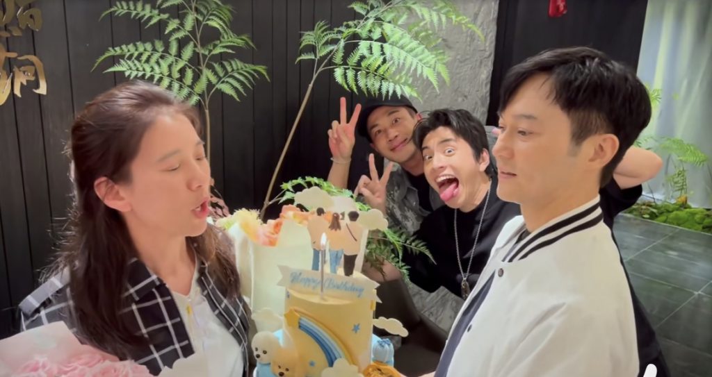 从工作室晒出的现场照来看,张智霖应该是在录制《披荆斩棘》时为袁咏仪庆生,其中好兄弟刘恺威和王大陆也有现身;一旁的张智霖深情地望著老婆许愿,两人更当众相拥亲嘴,好感情羡煞旁人。