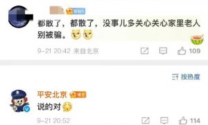 而在工作室发布声明,维护张一山正面形象的同时,网友发现,在某位网友发布的内容下方,罕见出现“平安北京”的账号回复。