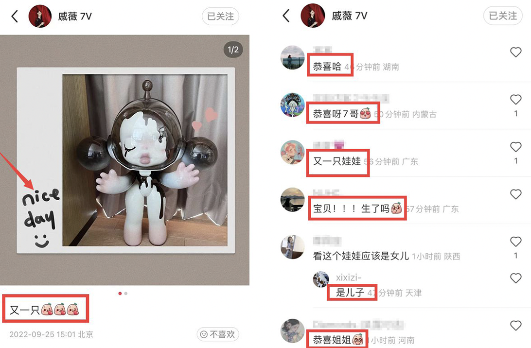 戚薇在微博上晒的娃娃造型看似女孩,因此网传一度传二胎是女宝宝,但随即有知情人士留言澄清“是儿子”,不过,到目前为止,李承铉及戚薇未证实消息。