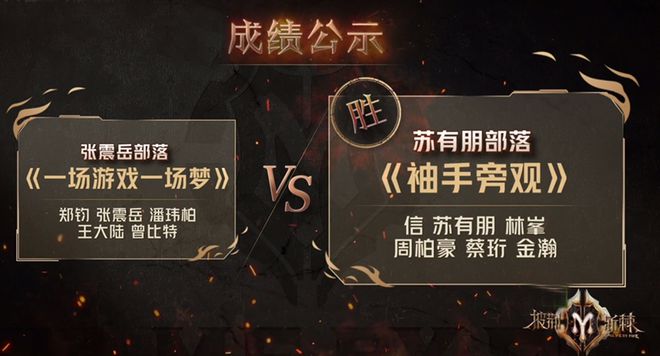 之后,下半场的1V1比拼,张震岳部落《一场游戏一场梦》对战苏有朋部落的《袖手旁观》