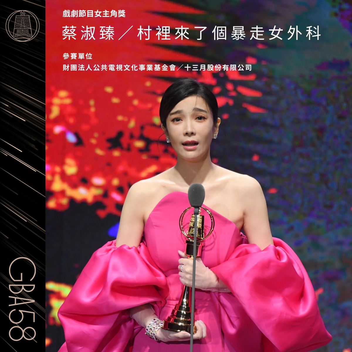 第58届金钟奖戏剧类颁奖典礼圆满落幕,戏剧节目女主角奖由《村里来了个暴走女外科》蔡淑臻拿下,薛仕凌凭《台湾犯罪故事-出轨》夺得视帝宝座。