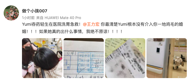 Yumi友人在微博发文:Yumi吞药轻生在医院洗胃急救!