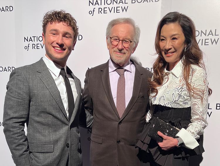 昨晚颁奖礼上,最佳导演得主史提芬史匹堡(Steven Spielberg)身上,汤告鲁斯(Tom Cruise)监制兼主演《壮志凌云:独行侠》(Top Gun: Maverick)获颁最佳电影。