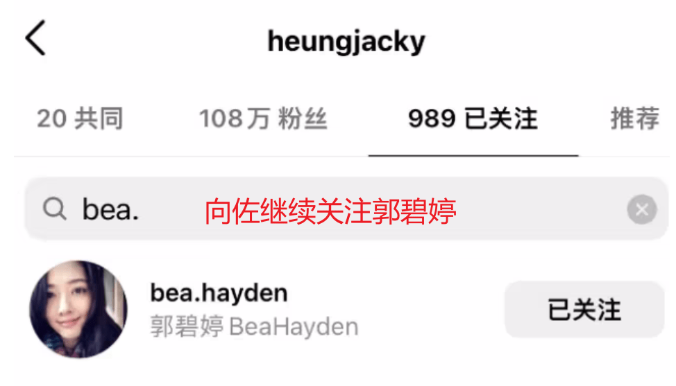 另外,网民也发现郭碧婷的IG取关向佐,但是向佐目前还是关注着郭碧婷,但两个人很久没有互动,更没有同框的画面;郭碧婷其他社交网站的账号也是没有关注向佐,网民猜测两个人关系彻底发生变化。