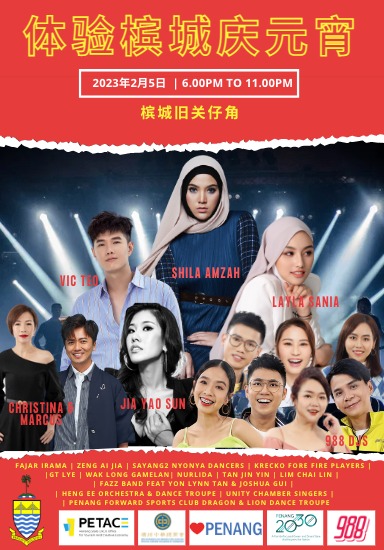 槟州旅游与创意经济事务行政议员杨顺兴指出,本月5日(周日)傍晚6时起,“体验槟城庆元宵”活动将在旧关仔角草场盛大举行,除了亚洲最受欢迎当代女性录音艺术家歌手茜拉会出席活动,988电台主持人也将“献声”与民众一同庆元宵!