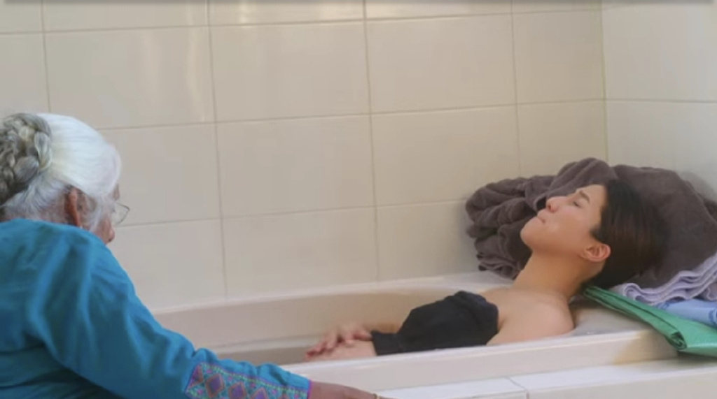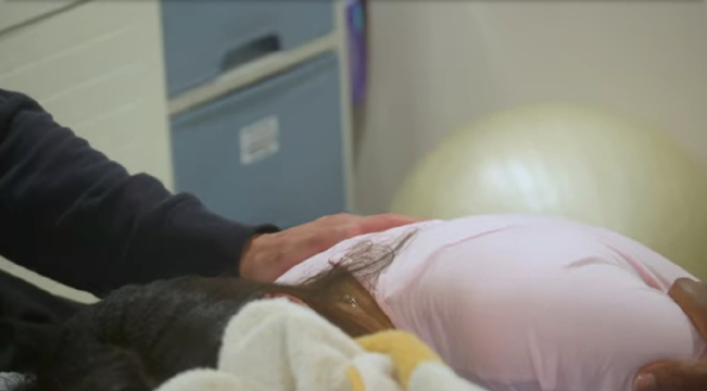 此外,她的老公Jeremy亦不时帮她按摩腰部及盆骨位置,及后助产士来到她的家为她检查,并开始为她的浴缸注水,另一助产士到场协助她生产。