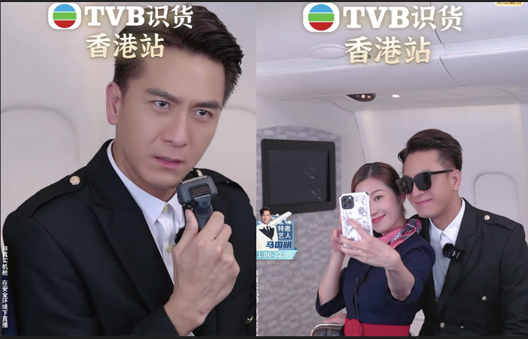 直播最大特色是把直播间搬去拍摄剧集《冲上云霄》机舱实景内进行,马国明以型爆机长Look出现,陈自瑶则穿上空姐制服化身机舱乘务长,并拿出手机与Chok爆机长集邮,相当搞笑。