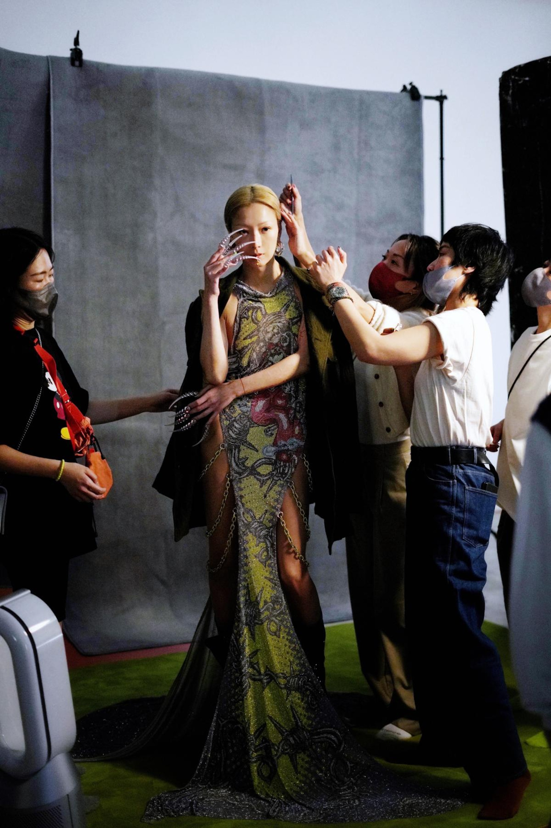 她还透露事前认真做了一些功课:“我在拍摄前做好皮肤护理、睡好点、做面膜等基本准备,今日拍照海报这条裙确实有少少难穿,因为剪裁特别又好多元素,有舞台感、高贵感,还有点Punk,一套裙子有这么多元素,好特别,所以我都要做好身型管理。结果无问题,已经过了一关啦,我好满意!”