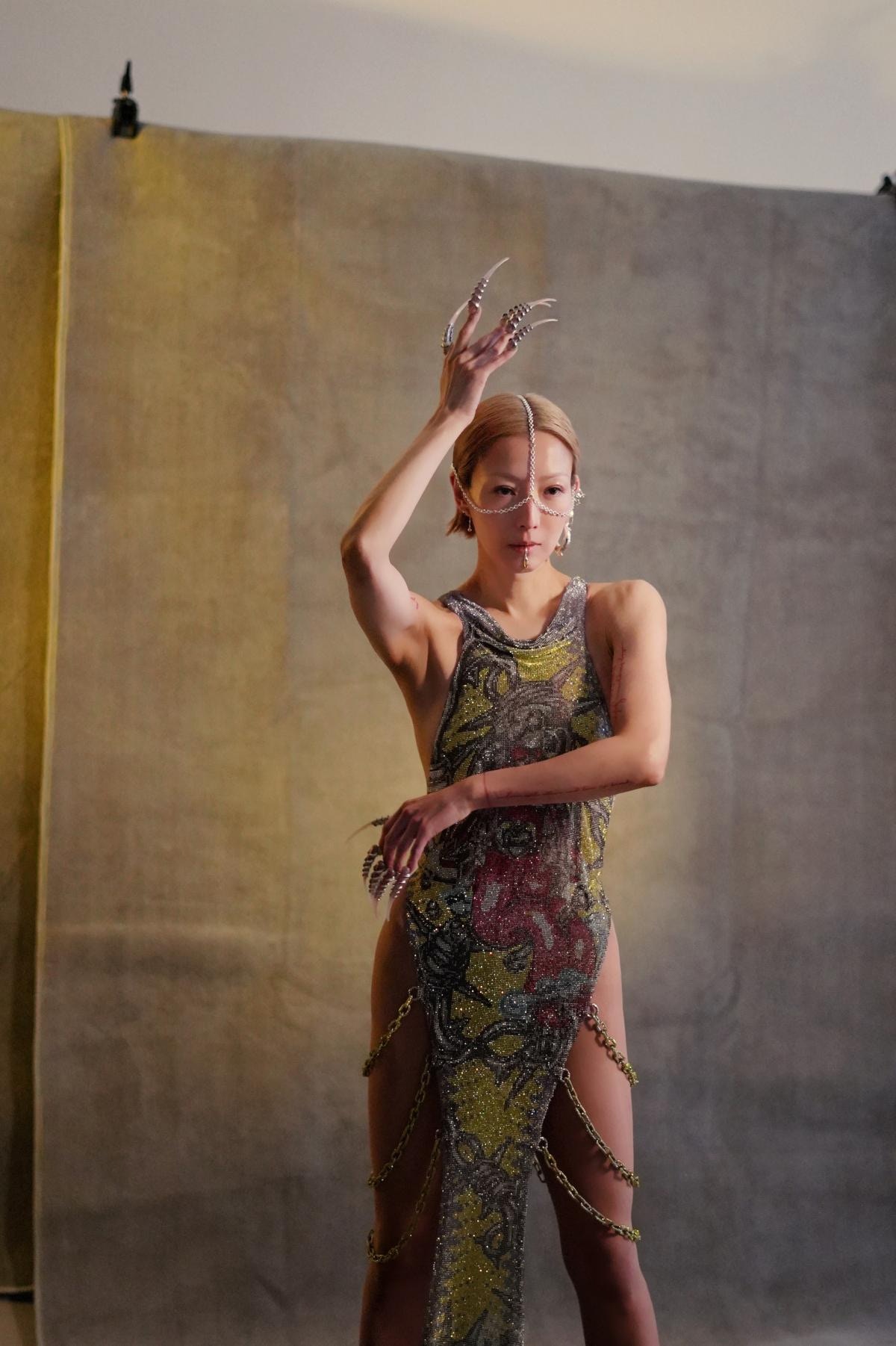 她还透露事前认真做了一些功课:“我在拍摄前做好皮肤护理、睡好点、做面膜等基本准备,今日拍照海报这条裙确实有少少难穿,因为剪裁特别又好多元素,有舞台感、高贵感,还有点Punk,一套裙子有这么多元素,好特别,所以我都要做好身型管理。结果无问题,已经过了一关啦,我好满意!”