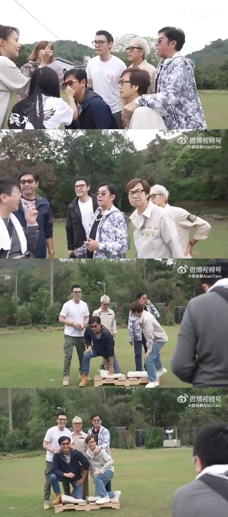 视频中所见,“五虎”你一言我一语,为求重做当年动作,大家都听从工作人员指示排位,经过多番努力,加上工作人员举起当年的旧照片,他们扰攘一轮终于成事,由陈友举起左手指天,钟镇涛搭住谭咏麟肩膀,其余两人则望向镜头,最终大功告成。