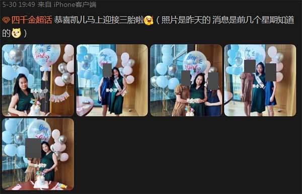 《中国报》引述网友爆料,凯儿日前还举办性别揭晓派对,揭露三胎性别。
