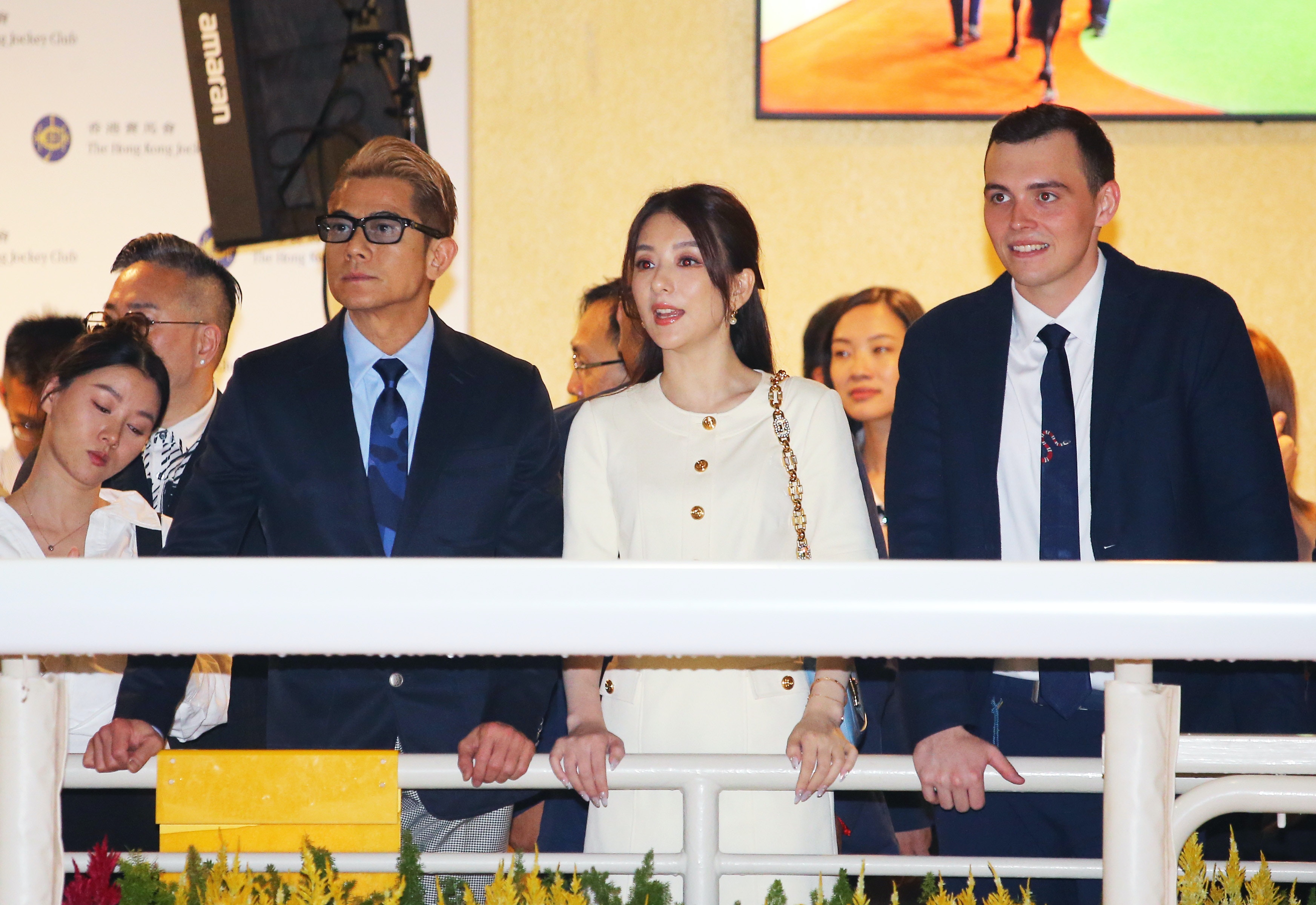 城城之后与老婆一起到 “凯旋门” 拉头马,表现风骚的他,不时与人挥手打招呼,还开心到比V;城城享受胜利时刻,又不时与骑师何泽尧密谈,看来对人马表现均到非常满意。