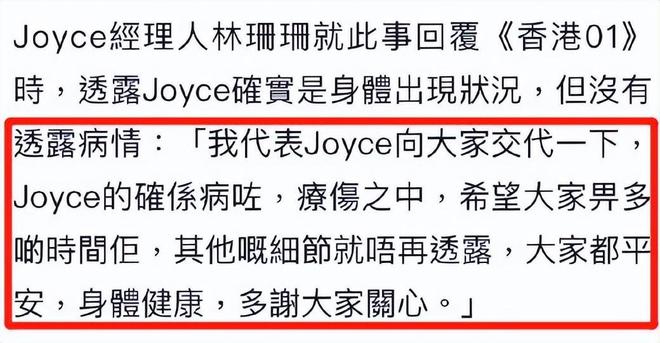 对此,郑欣宜歌手好友冯允谦(Jay Fung)曝光其近况。港媒《明报》报道,冯允谦被问及时透露:“我不想讲太多,她在家休息,而我私下有传讯息问候她。我很挂念她,也很想写歌给她,但重要的是她休息够就会回来。”并谢谢外界给郑欣宜的关心。