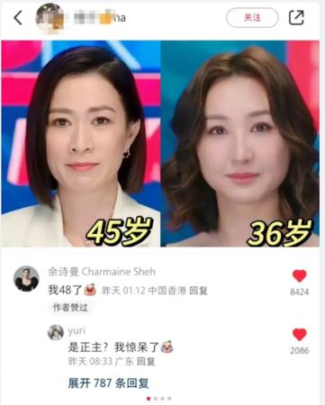 香港女星佘诗曼回锅接下TVB台庆大剧《新闻女王》,人气再攀高峰。近日,网友贴出一张她与另外一位主演的对比照,并列出两人年纪,其中列明佘诗曼“45岁”,竟意外钓出本人回应纠正。
