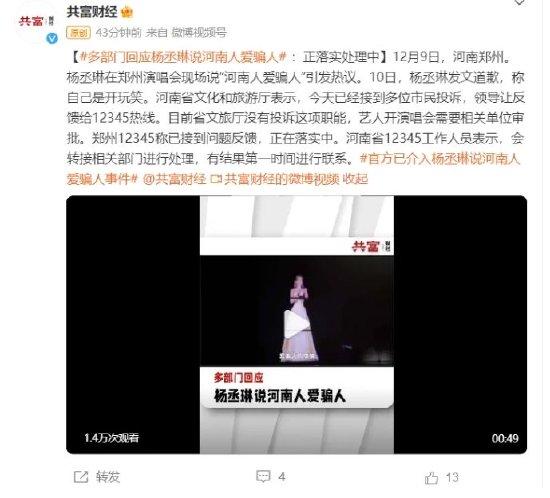 台湾著名艺人杨丞琳近日在中国郑州举行“LIKE A STAR”巡演开唱,期间和歌迷互动时脱口说出:“河南人爱骗人”,虽有澄清是开玩笑,但消息曝光后网民第一反应不爽,酸她:“赚河南的饭,还想砸河南的碗!”