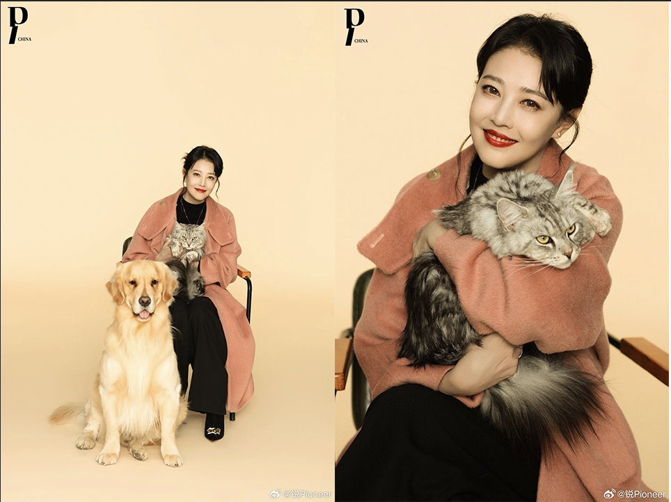 部分照片中还有她与猫咪、狗狗互动,也让人倍感温馨。
