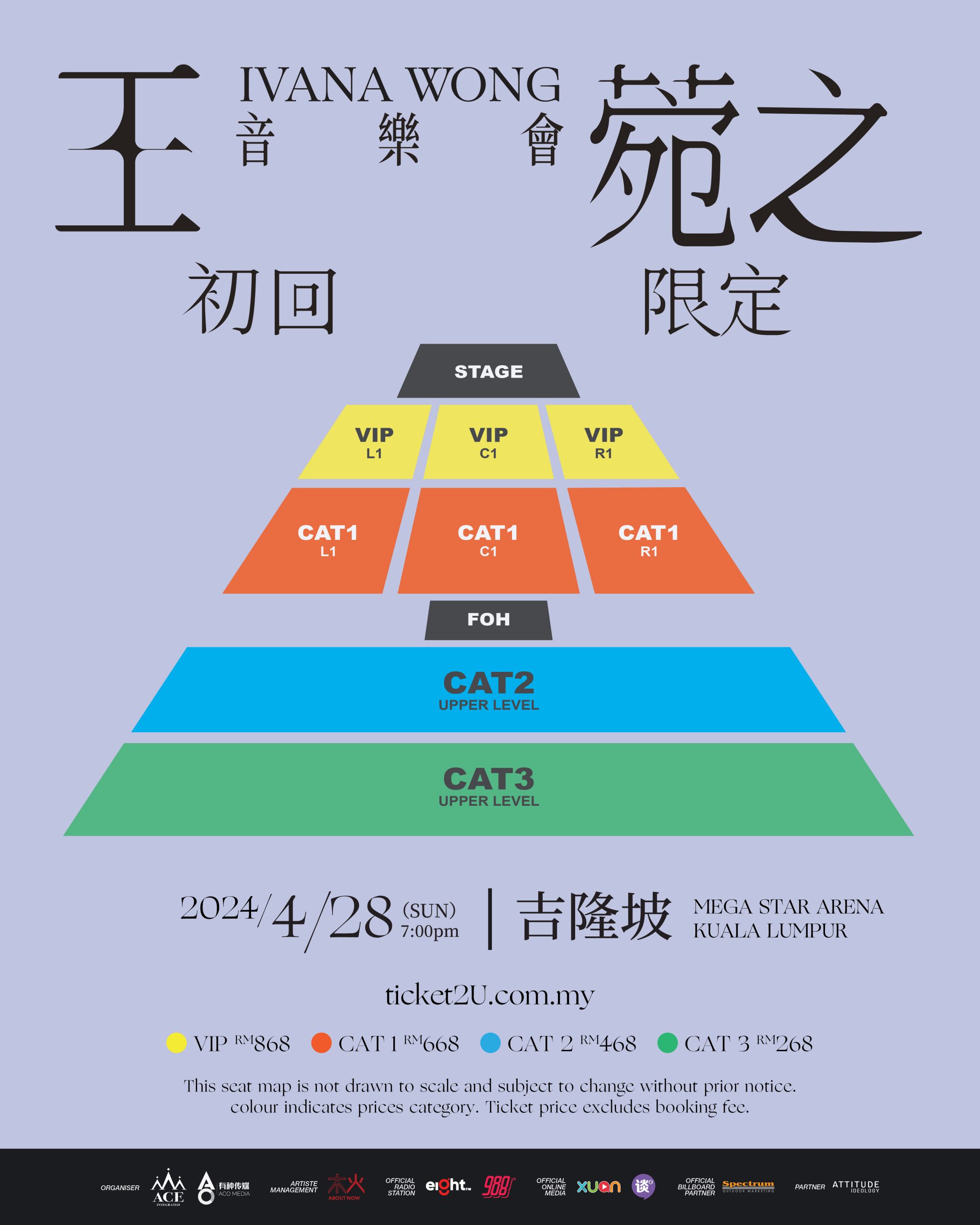 VIP RM 868 | CAT 1 RM 668 | CAT 2 RM 468 | CAT 3 RM 268 (未包含手续费)