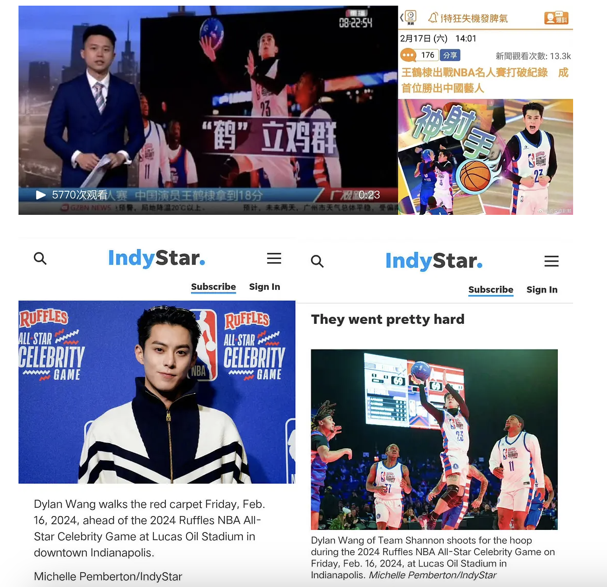 王鹤棣篮球场上的亮眼成绩,也让国内外相关报道,《中国日报网》称:“王鹤棣的背后,代表着中国当今的流行文化和千万青少年群体,他既是参与者又是传播者。”美国媒体《Sporting News》总结并称赞了他在赛场上的精彩表现,《IndyStar》与NBA官方ins也更新王鹤棣相关报道,记录他赛场上的重要时刻。