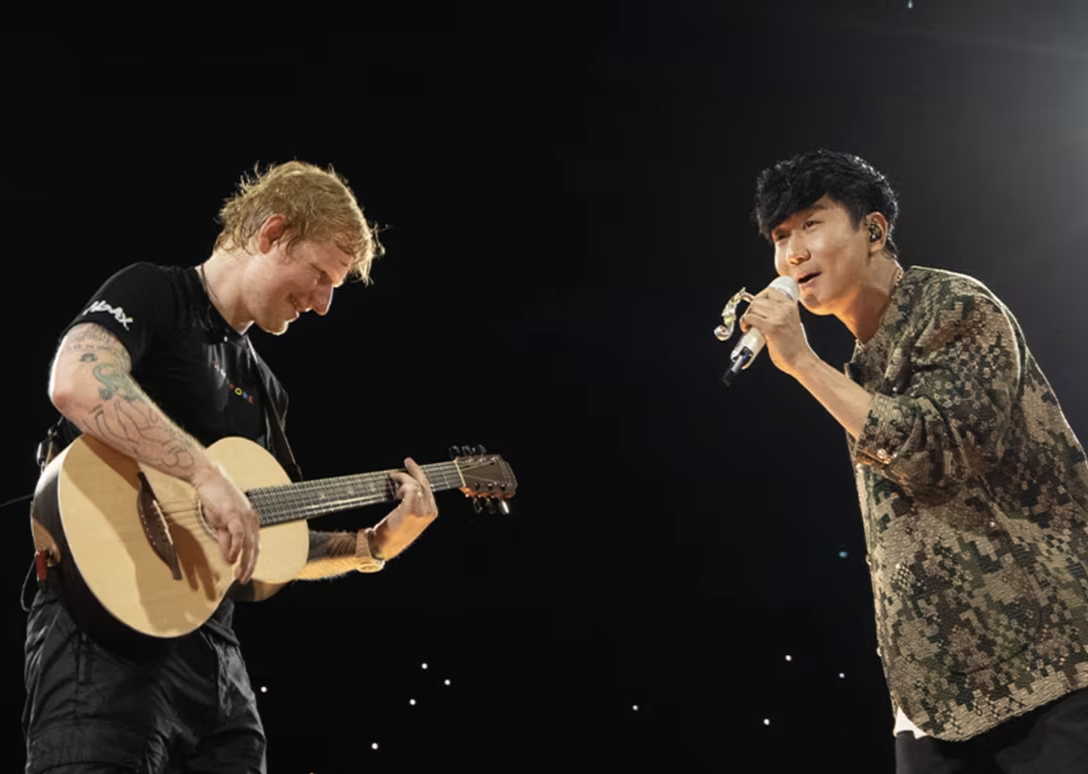 两大天王合体两人惊喜合体唱《不为谁而作的歌》,而Ed Sheeran较后也在在IG分享上场前10分钟学唱这首歌的过程。