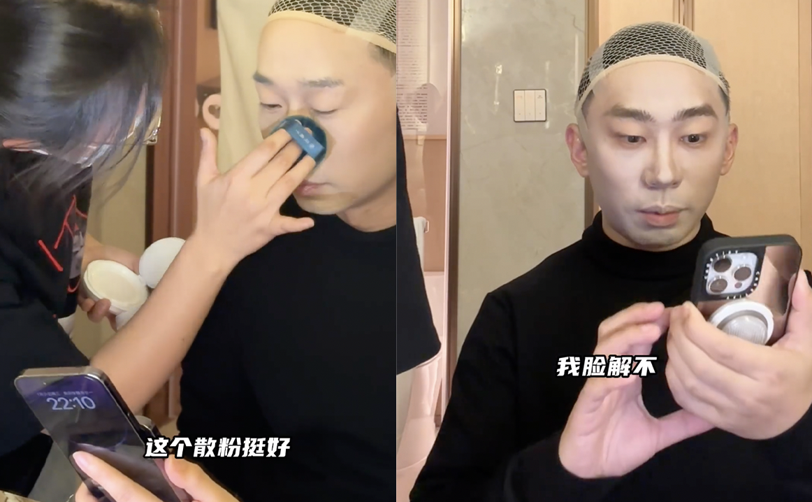 化妆师随后用胶带把他的鼻型改造,并开始上底妆、打阴影,妆才画到一半,杨迪便发现自己已无法用人脸解锁手机。
