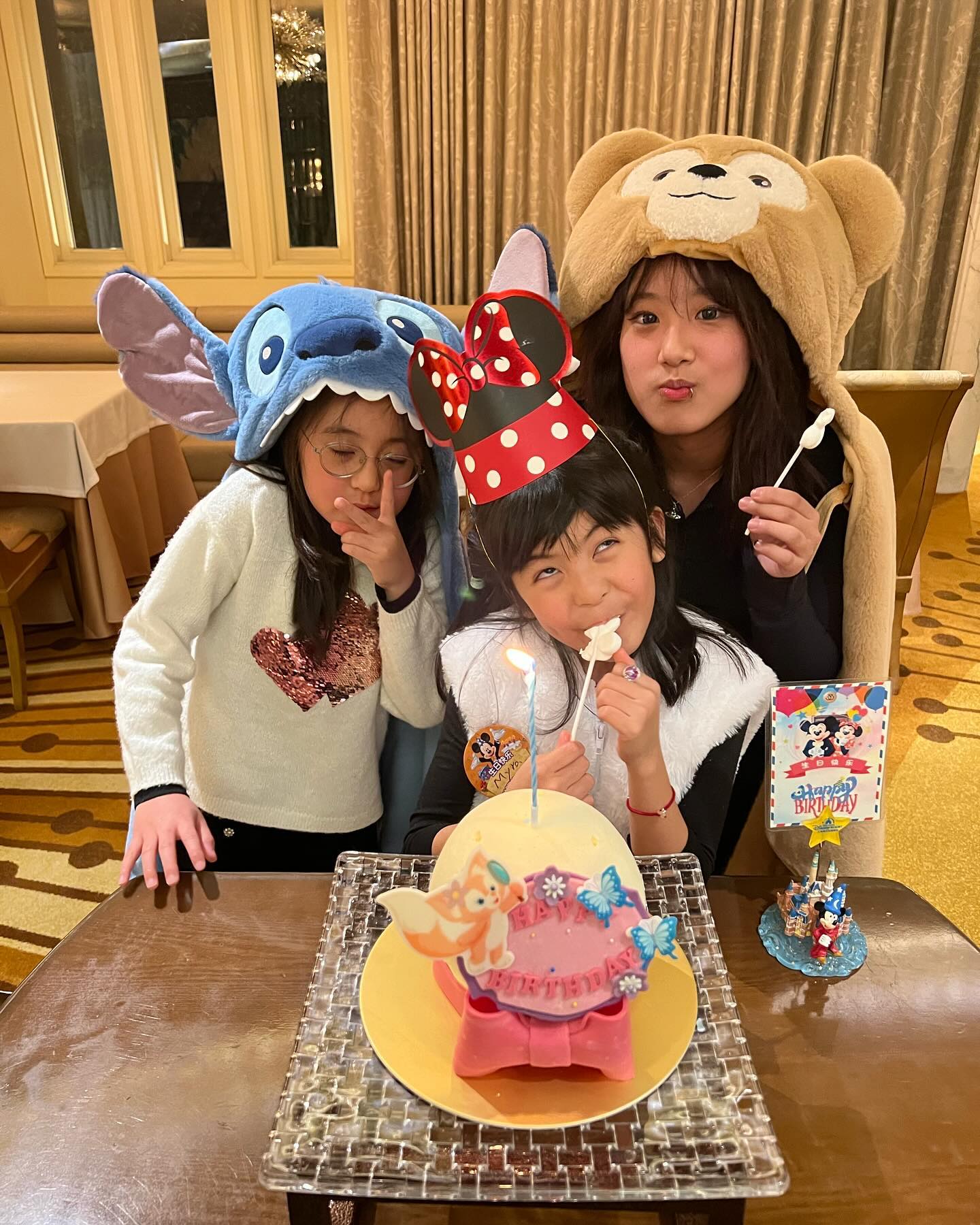 除了到游乐园玩耍,他们也为波妞举办了庆生派对,萧敬腾和Summer特地来参加,3个人一起眯眼、咧嘴扮鬼脸,搞怪模样如出一辙,让贾静雯感叹:“看了这张照片,简直觉得你们才是一家人!萧同学,你觉得你和波妞谁更帅呢?”她还感慨能与好友欢聚一堂,称这趟旅程非常完美。